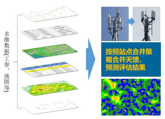 使用网规网优工具平台,基于上一步的天馈融合策略进行天馈合并,接着基于合并结果进行性能影响预评估,识别影响大的站点并修订合并方案。