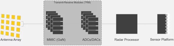 该技术对于有源电子扫描阵列(AESA)雷达系统的发展非常重要。AESA是完全有源的阵列,包含数百甚至数千个天线,每个天线都有其相位和增益控制。这些雷达系统使用相控阵发射器和接收器,以电子方式操纵波束而无需物理移动天线。与其他传统雷达相比,这些类型的雷达系统因其更高的目标功率、空间分辨率和鲁棒性而日益普及。例如,如果阵列中的某个元件发生故障,雷达仍可以继续工作。GaN放大器在AESA雷达中的应用日益增加,提供了更好的性能,可在更小的外形尺寸和更低的冷却需求下实现相同的输出功率。