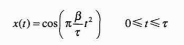 要满足以上3点,chirp信号,也称LFM,即线性调频信号是一个不错的选择,其数学表达式如下: